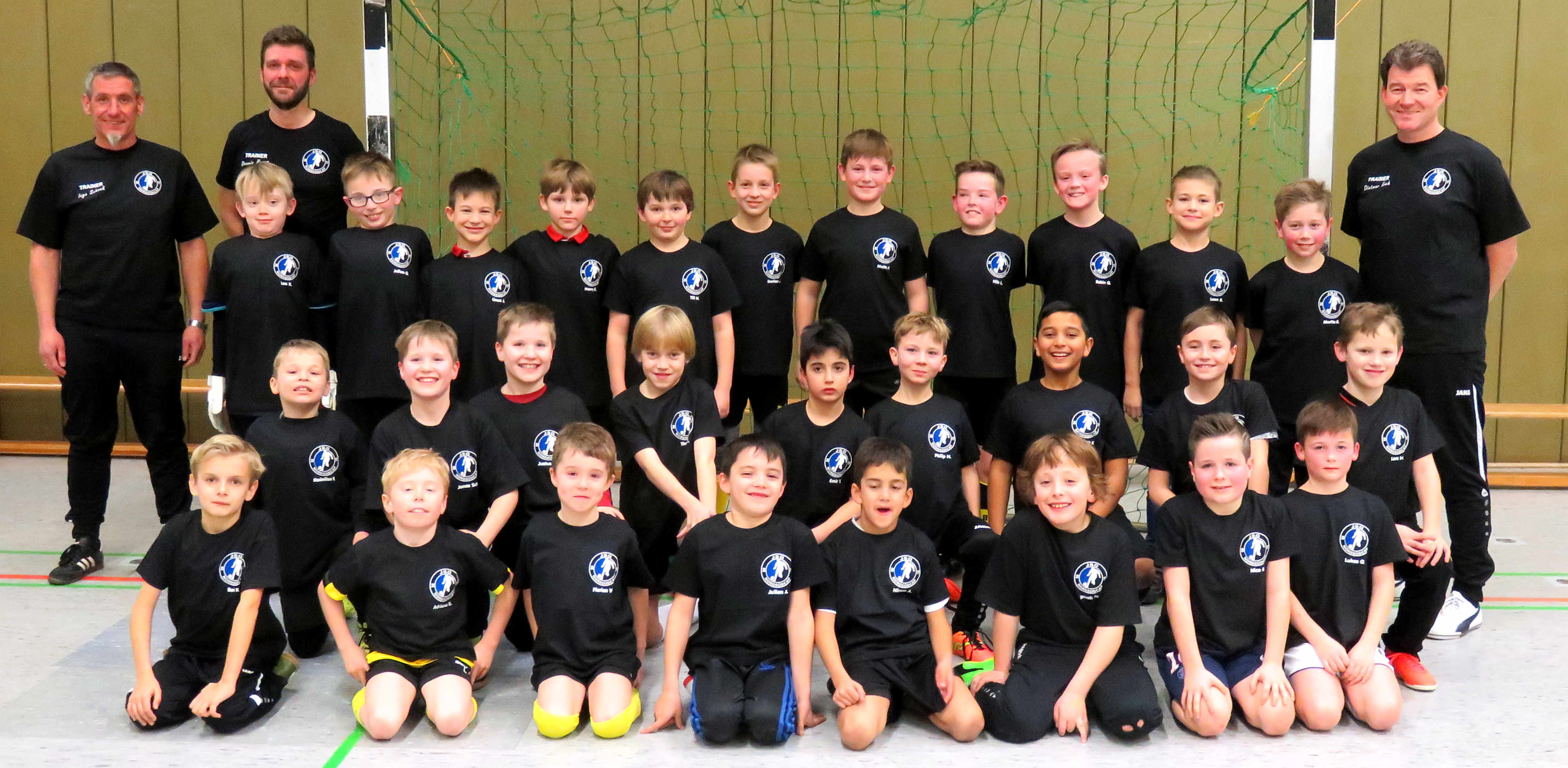 U9, U10 und U11-1-Junioren präsentieren die neuen Trainingsshirts, die inzwischen an alle Teams ausgeliefert sein sollten.