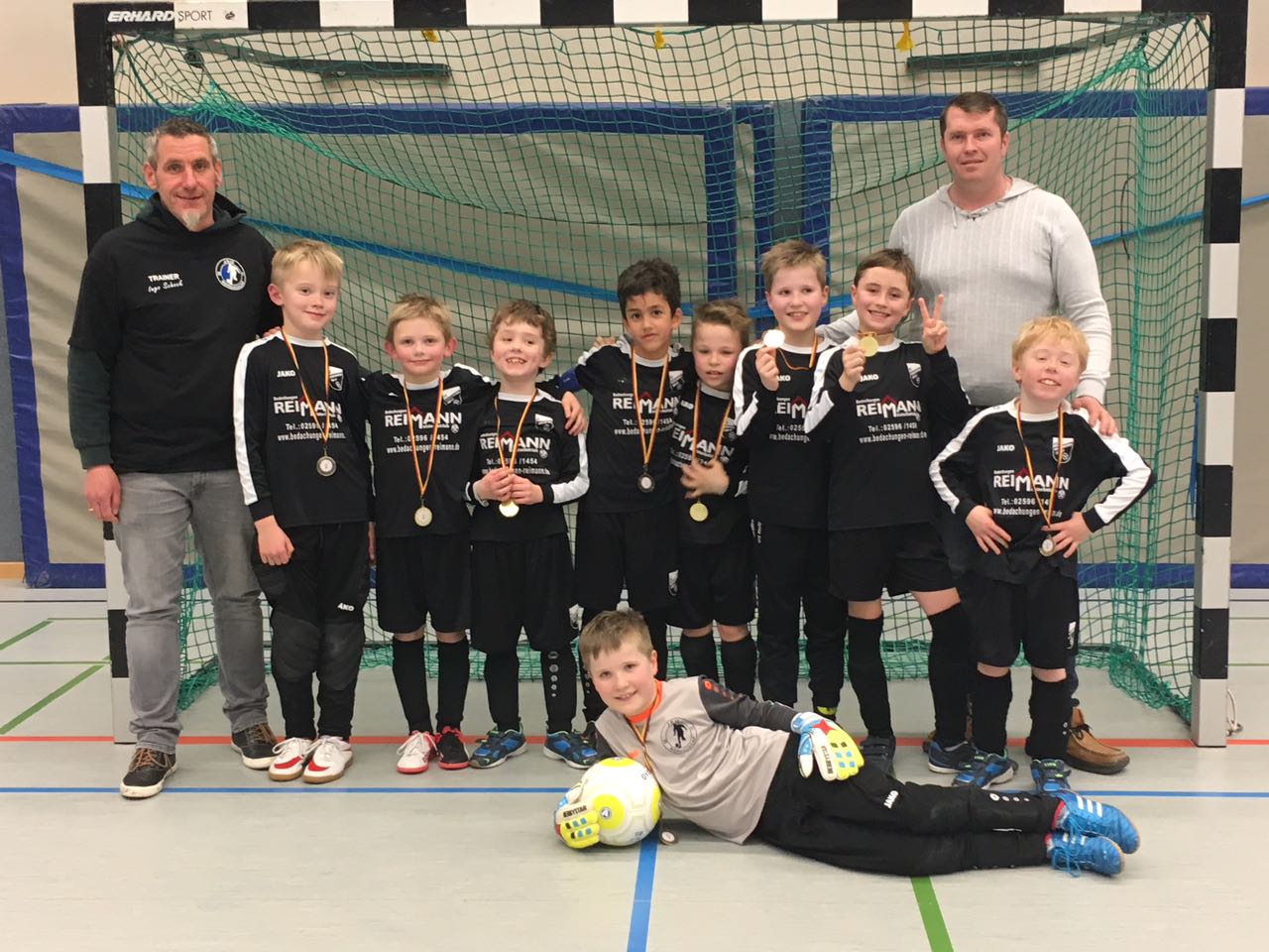 Mit 4 Siegen, einem Unentschieden und einem hervorragenden Torverhältnis von 11:2 haben die U9-Junioren ihren ersten Turniersieg errungen. Voller Stolz und Freude präsentierten sie ihre Medaillien.