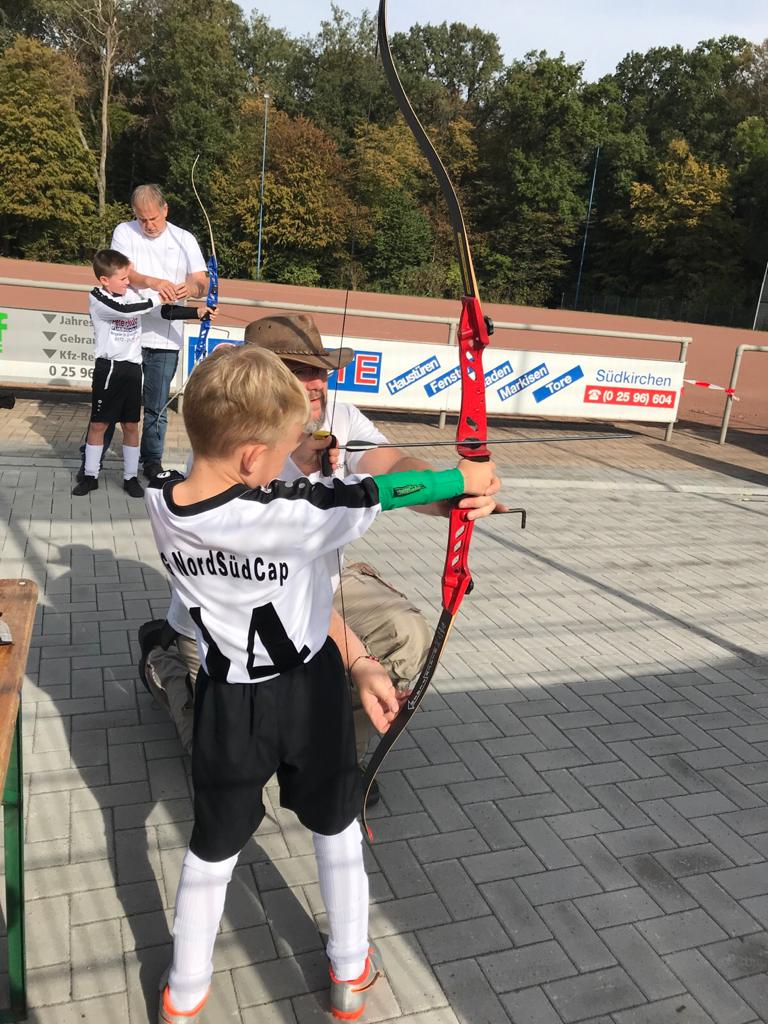 Danke auch an die Bogenschießabteilung des Schützenvereins Brambauer unter der Leitung von Ralf Rochelmeyer, die parallel zum Turnier eine Kostprobe ihres Sportes anboten.