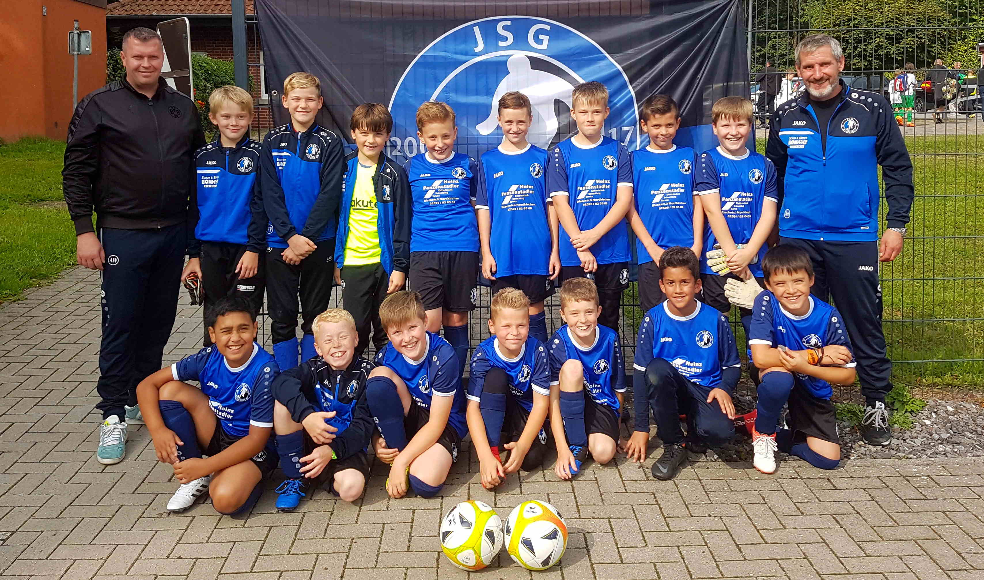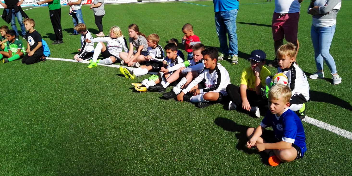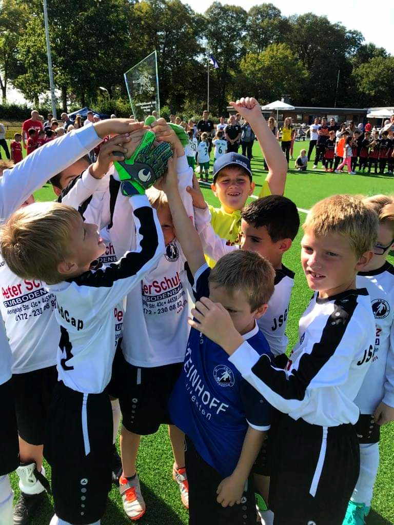 Mit einer MERCI bedankte sich U8-Spielführer Simon Greferath bei Oliwia Bauersfeld für die neuen Traingsshirts. Die Kids konnten sich vorab sogar die Farbe aussuchen. “Borussen-Gelb” lag bei der Abstimmung knapp vor “Königsblau”. In der Tabelle ist es ja zur Zeit etwas anders. Die neuen Shirts, die natürlich nicht den JSG-Vereinsfarben entsprechen, bleiben dann auch bei den Spielern und können auch privat benutzt werden.
